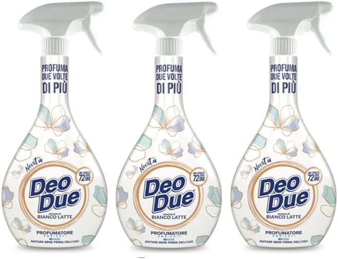 3x DEO DUE PROFUMATORE SPRAY 450 ML BIANCO LATTE