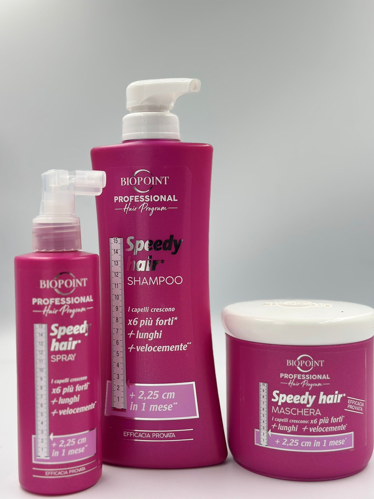 Biopoint Speedy Hair - Shampoo 400ml, Maschera Capelli 400 ml e Spray Capelli 250 ml, Azione Stimolante Per Una Crescita Più Rapida Dei Capelli