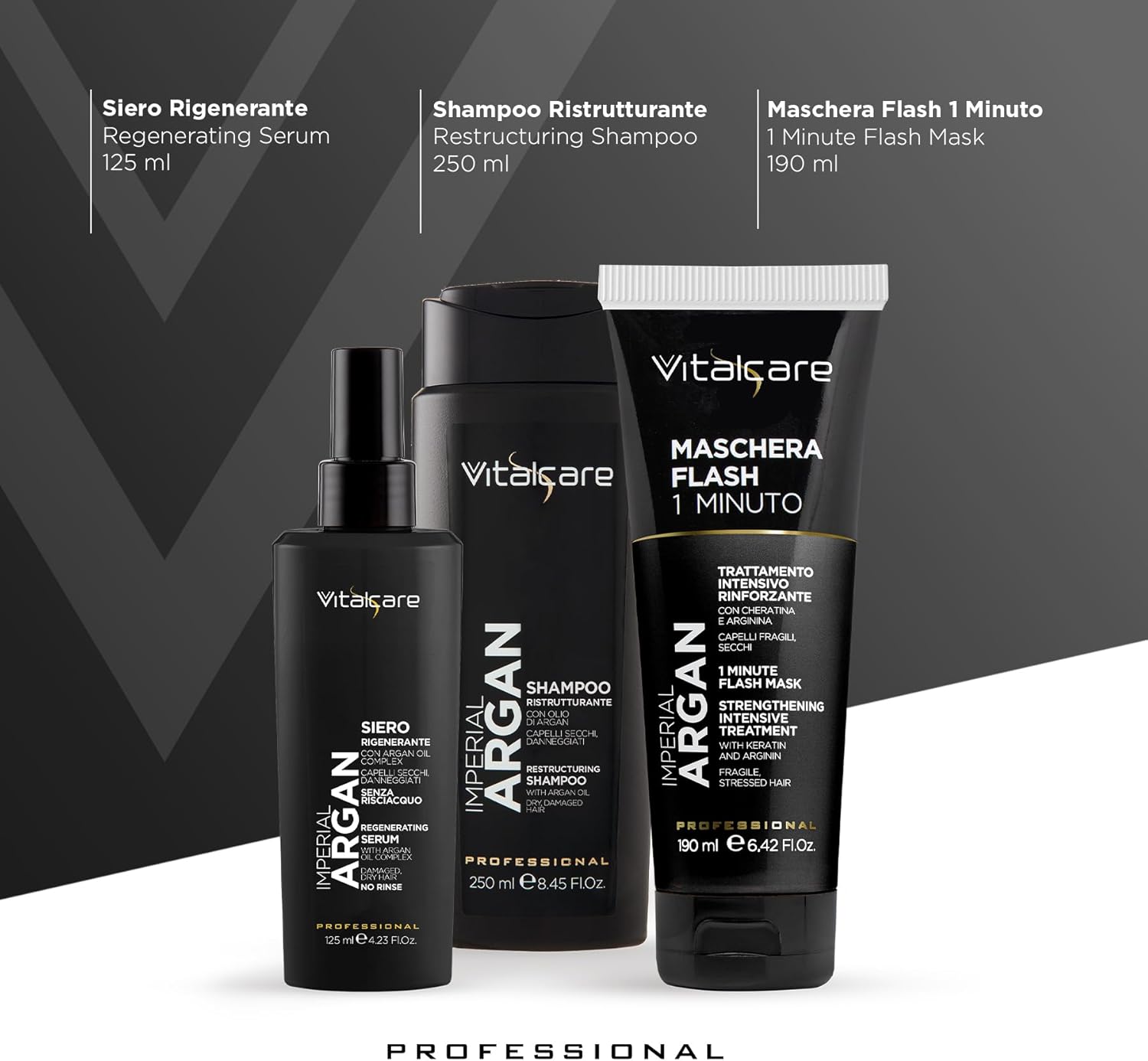 VITALCARE | Gift Set Argan - Shampoo 250ml + Siero 125 ml + Maschera Flash 190ml